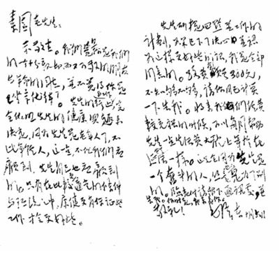 ……我们觉得你是我们的一个十分亲切而又可尊敬的朋友与革命同志,并不觉得你是“坐享优待”。先生的行止与工作,完全依照先生的健康、兴趣来决定,因为先生是老年人了,不比年轻人,这一点不但我们应顾到,先生自己也应顾到的。只有在比较更适当的条件与环境之中,康健更有保证些,工作才会更好些。